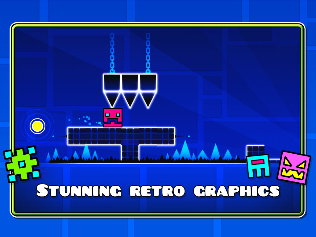 Prepare for a near impossible challenge in the world of Geometry Dash. Push your skills to the limit as you jump, fly and flip your way through dangerous passages and spiky obstacles.