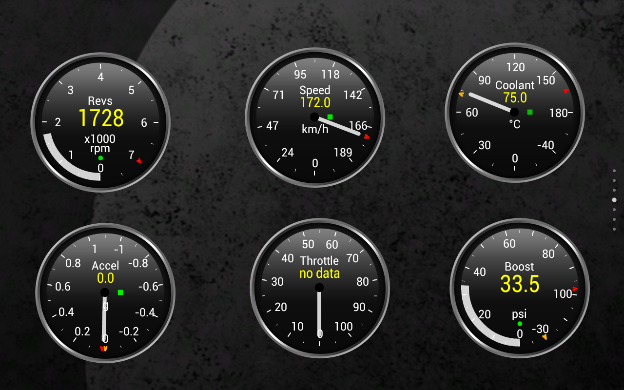 * Alarms and warnings (for example if your coolant temperature goes over 120C whilst driving) with voice/speech overlay