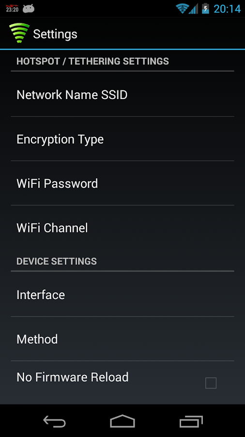 WiFi Tether Router is simple to use without complexities. Simply configure the your hotspot by first naming your personal network (located under “Configure WiFi Router”), then select “Enable WiFi Router” to begin surfing the web from your secondary device or PC.