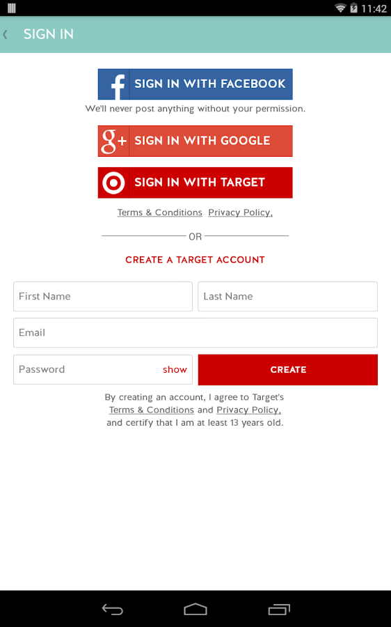 Get started today by signing in with Target, Google+ or Facebook and instantly start seeing your savings add up!