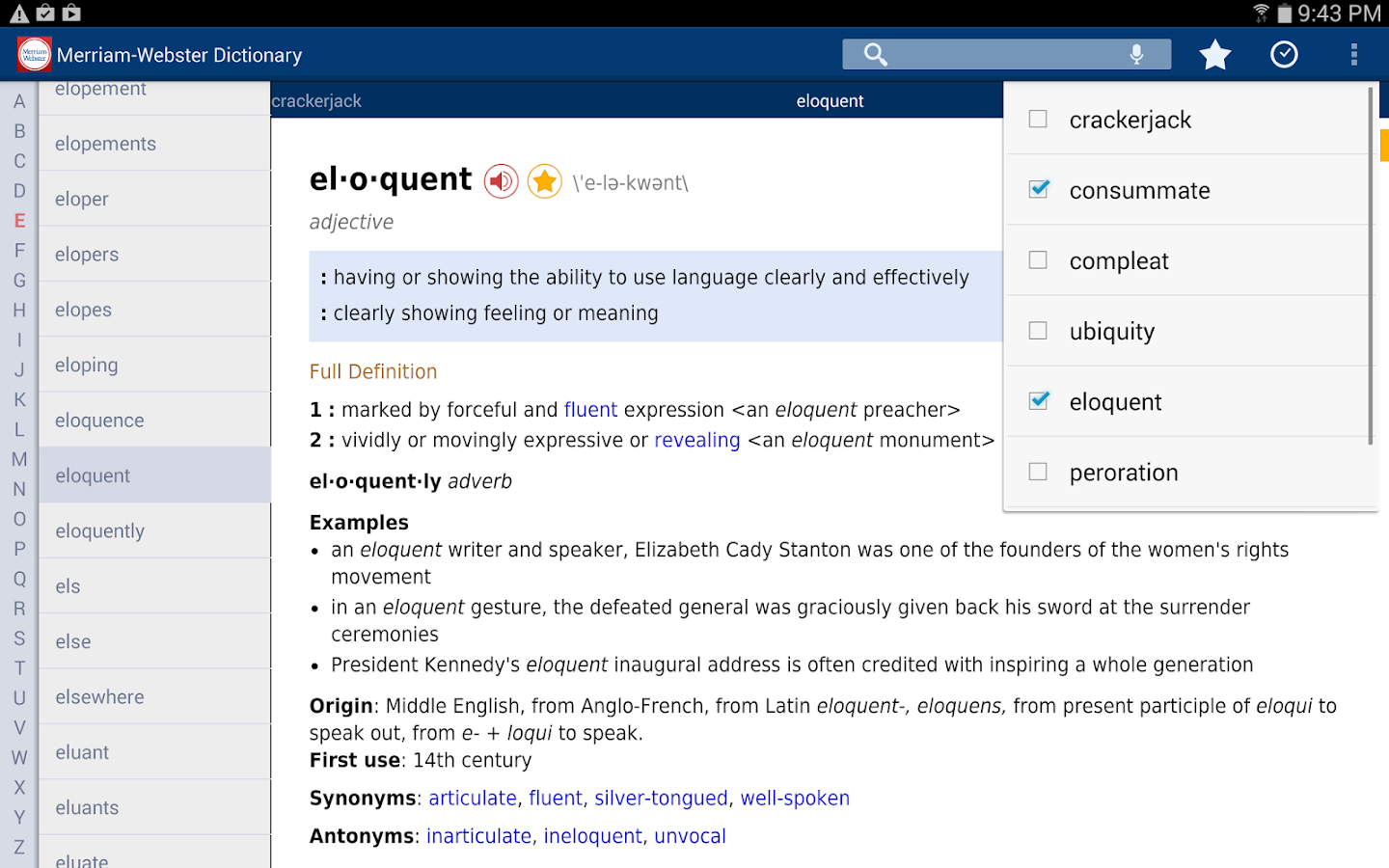 * Favorite Words and Search History: Keep track of the words that are most important to you