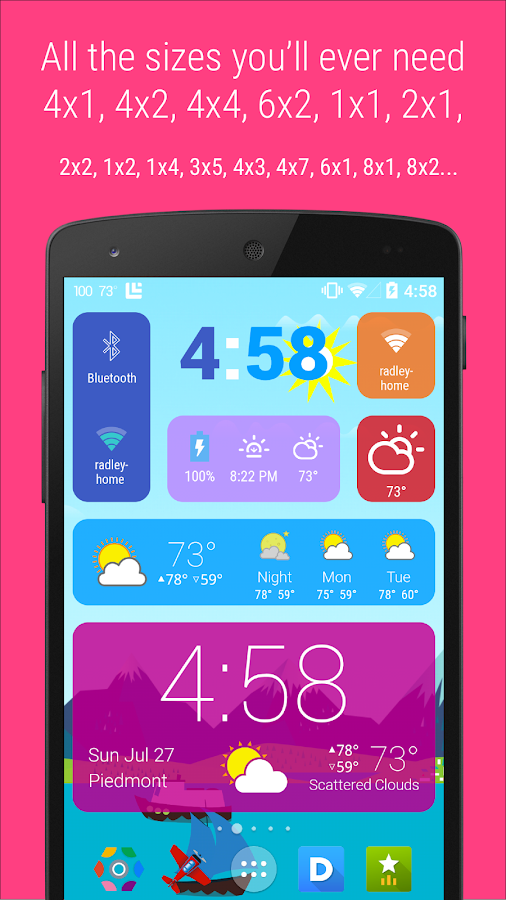 Over 1 million users agree: HD Widgets is the most fun and easy way to add widgets to your home screen! Customizing widgets has never been easier! Just swipe and tap to select colors, icons, clocks, layouts, backgrounds and more!