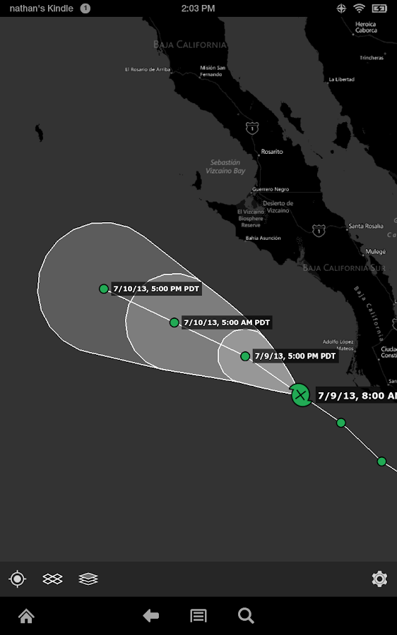 The map has the standard pinch/zoom capability which allows you to smoothly zoom and pan around the United States and see what the weather is like anywhere.