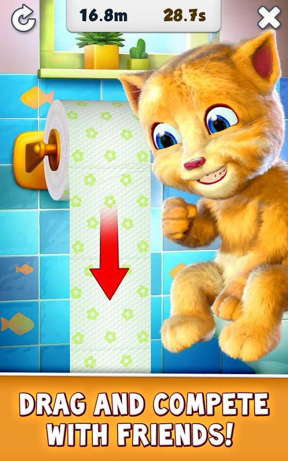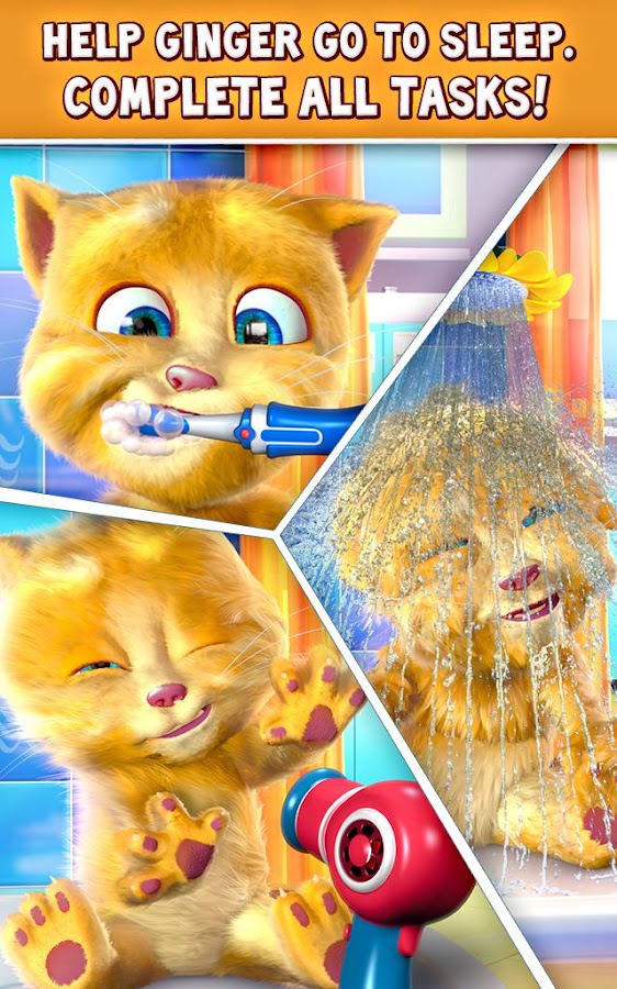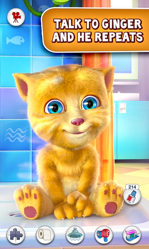 - Play games with Ginger: Pop toothpaste bubbles, roll down the toilet paper and play the jigsaw puzzle game.
