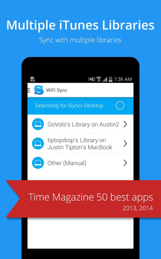 iSyncr for iTunes (Latest Version) is a Android App developed by JRT Studio. It is a Music & Audio kind of App with lots of features listed. This App already downloaded around 500,000 - 1,000,000 times from initial release. iSyncr for iTunes requires your device to have Android Latest Version to open this App. This particular version of the App released with lot of bug fixes and performance improvements. You can go ahead and Download iSyncr for iTunes (Latest Version) APK full version from the download page to install directly on your Android Device.