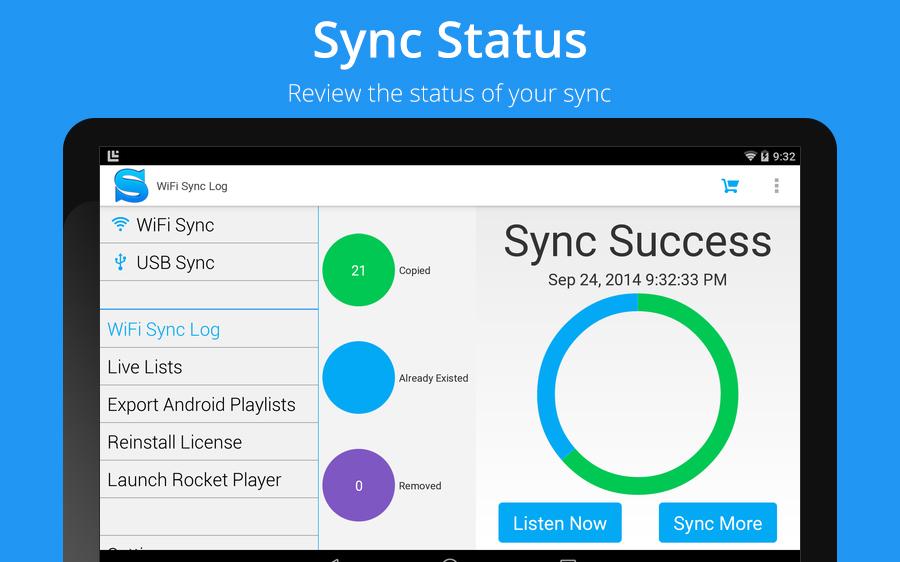 Combine iSyncr with our free Rocket Player music player to take advantage of these additional features: