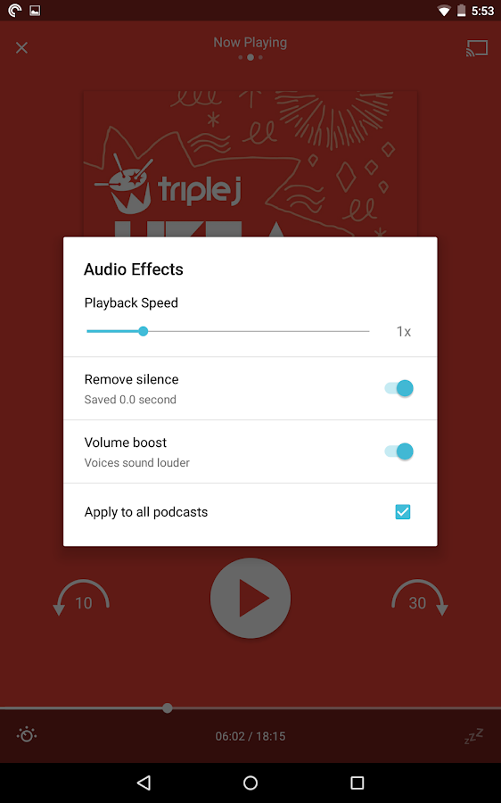 AUDIO EFFECTS: Always dreamed of playing more podcasts, but don't have time? Use our silence removal feature to dynamically speed up podcasts. Podcasters talking too softly? Give them a (volume) boost!