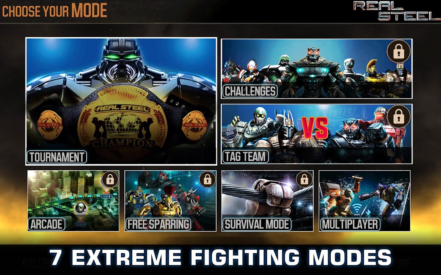 Choose from Tag Team, Challenges, Tournament, Survival & Free Sparring to fight!