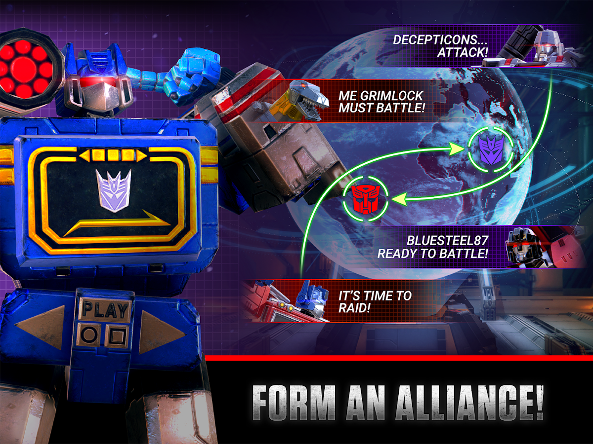 In this digital version of the classic battle of Good vs Evil, Autobots vs Decepticons, commanders around the world must choose a side, assemble the ultimate team of Transformers characters and prepare their defenses in the final fight for planet Earth in Transformers: Earth Wars!