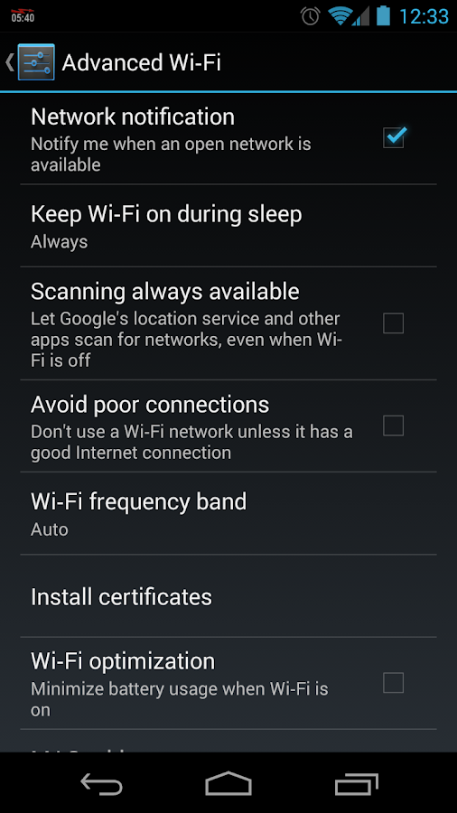 *** If you have problems with Android 4.3 / 4.4, be sure you have DISABLED (unchecked) the "Scan always available" option following path: Settings -> WiFi -> Advanced -> Scan always available ***