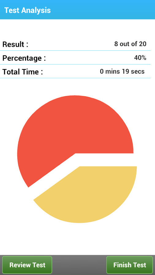 There are two tests available in this app: Practice Test and Mock Test.Practice Test contains 340+ questions, split into 17 categories. Each category contains appx 20 questions. Mock Test contains random questions from the questions bank. For every quiz, you can have a review. All the correct answers will be highlighted in Green Color.
