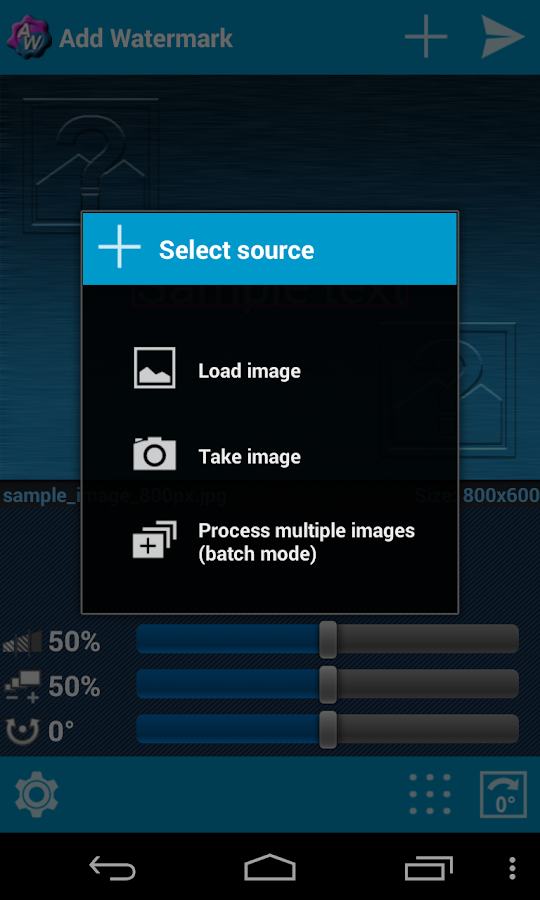 Add Watermark 2.9.5 is a Android App developed by AndroidVilla. It is a Photography kind of App with lots of features listed. This App already downloaded around 50,000 - 100,000 times from initial release. Add Watermark requires your device to have Android 2.9.5 to open this App. This particular version of the App released with lot of bug fixes and performance improvements. You can go ahead and Download Add Watermark 2.9.5 APK full version from the download page to install directly on your Android Device.
