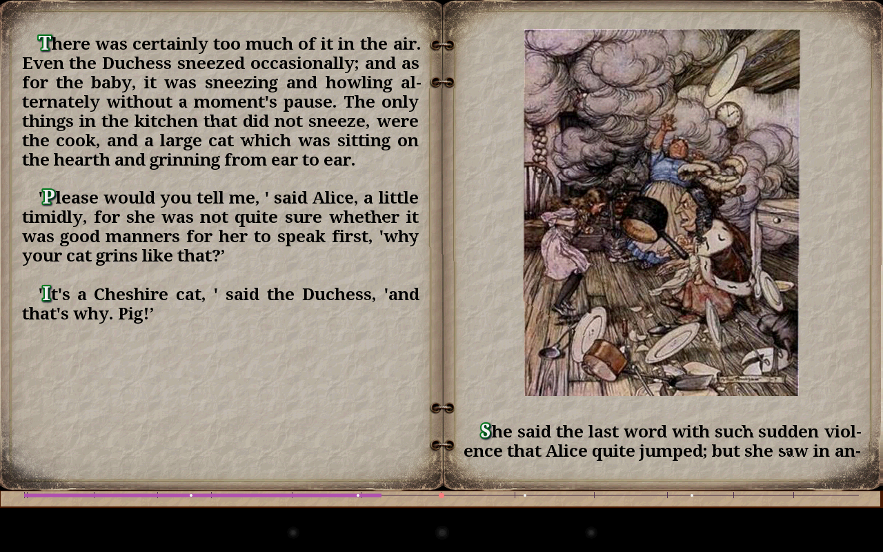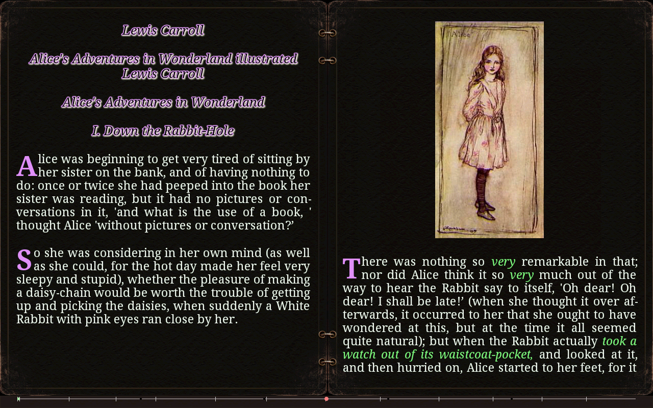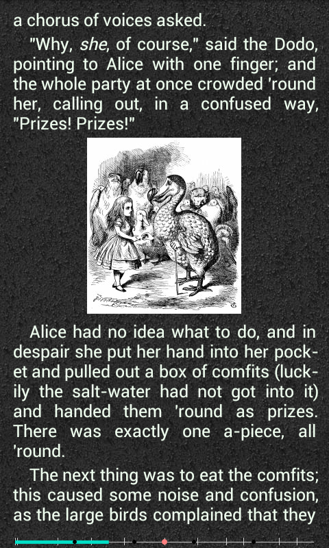 - Navigation in the text: by percents, by pages, to the beginning/end of the text, 10 pages forward/backward, to the next/previous chapter.