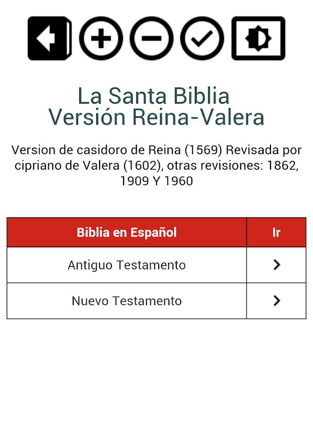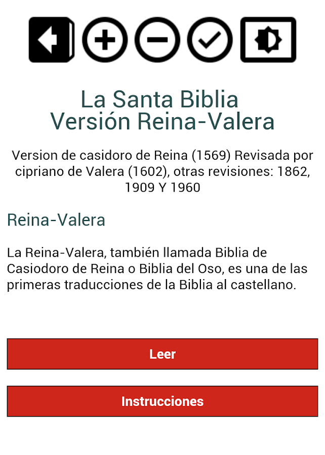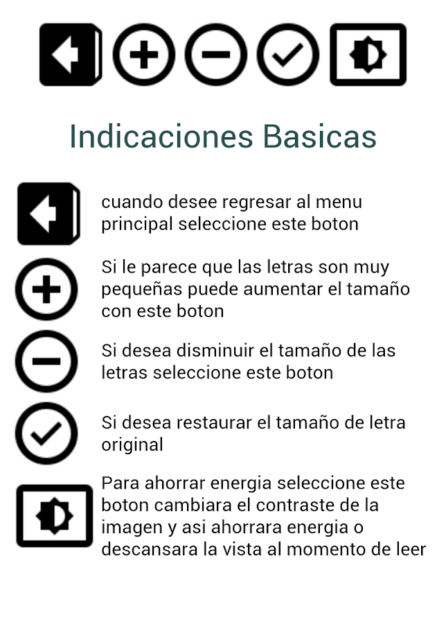 -La Biblia trae Controles para su mejor lectura como Zoom y contraste de colores para su mejor lectura (Revise las instrucciones dentro de la aplicacion)