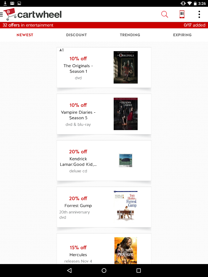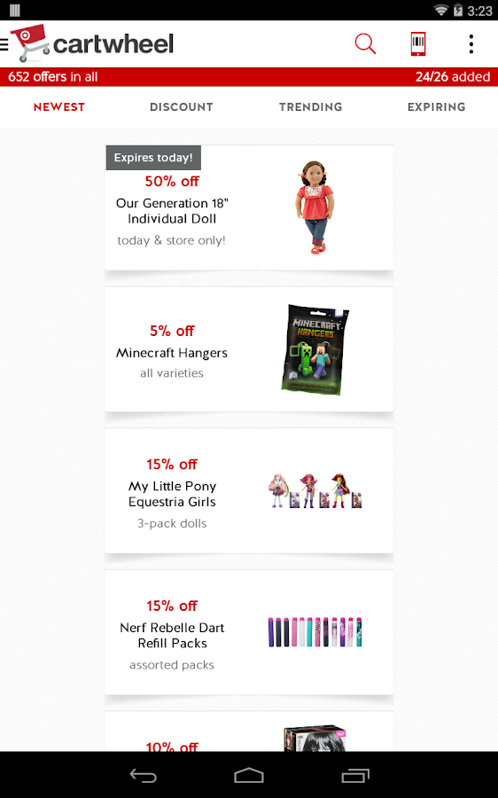Don't have time to browse the app for deals before you shop? No problem! Just use the barcode scan feature found in the app menu to scan the barcode of any item in store and see if there is a Cartwheel offer for that item. If no offers are available, we'll show you similar deals.