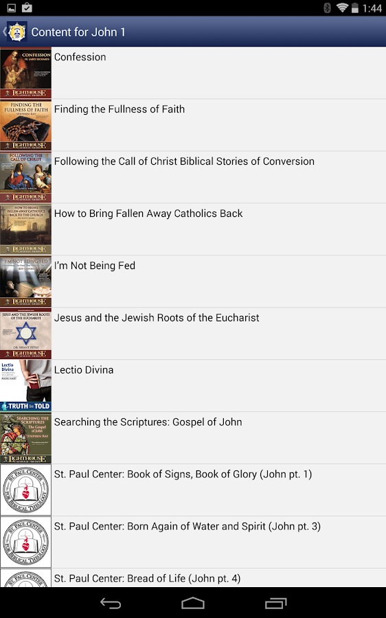 This Catholic Study Bible app also features inspirational and insightful audio content that will take you deeper into Scripture than ever before. Listen to over 10 hours of FREE audio presentations from Dr. Scott Hahn and the "St. Paul Center for Biblical Theology" provided by the Augustine Institute. Or browse, preview, and download hundreds of the best and newest Lighthouse talks from the best Catholic speakers in the world - streaming straight from your mobile device!
