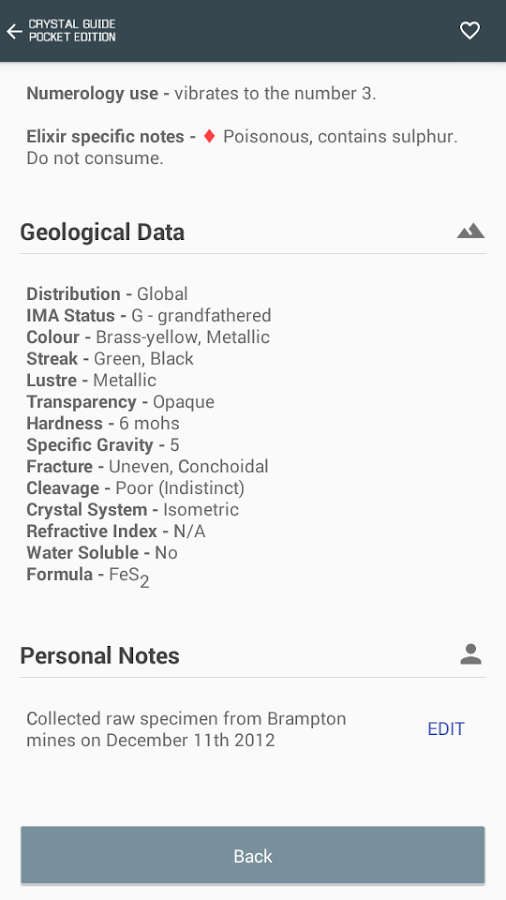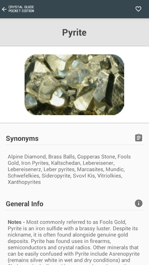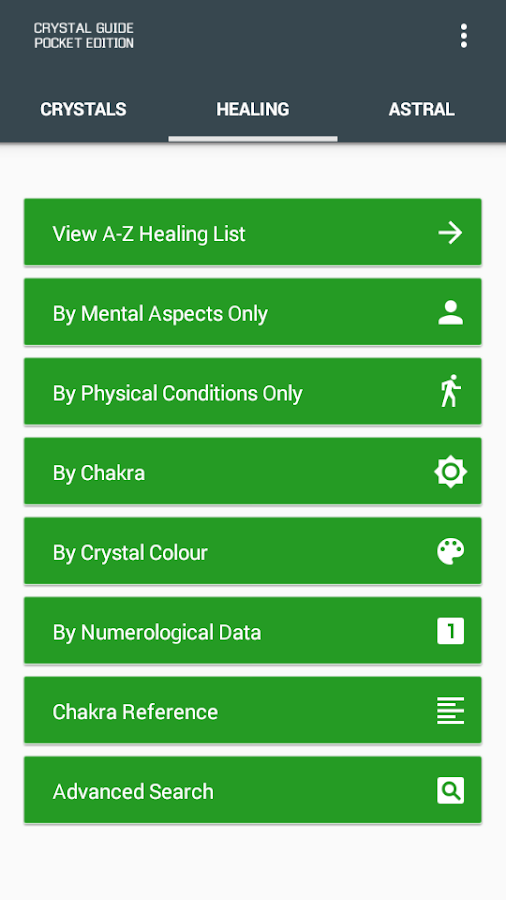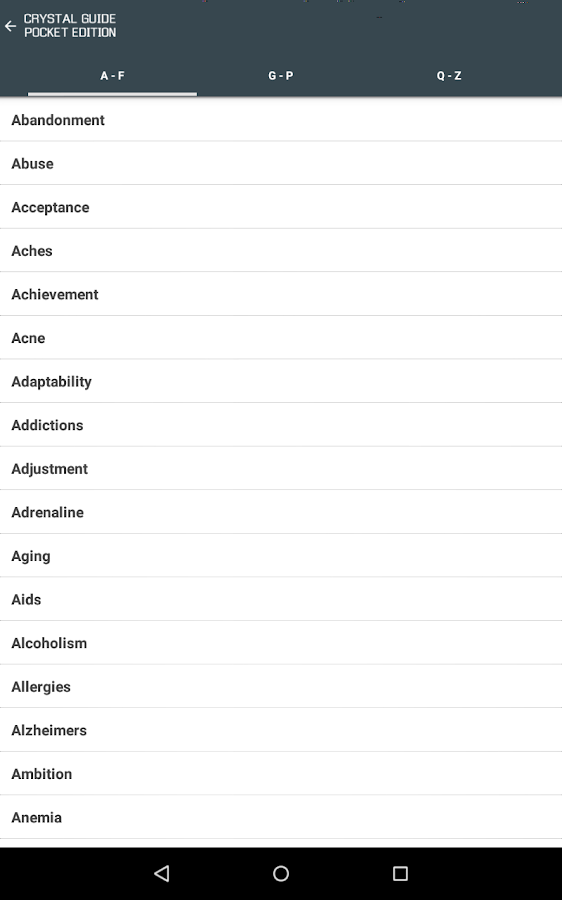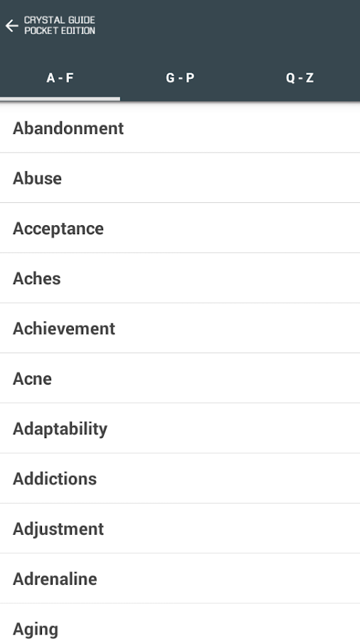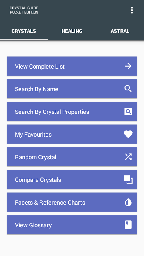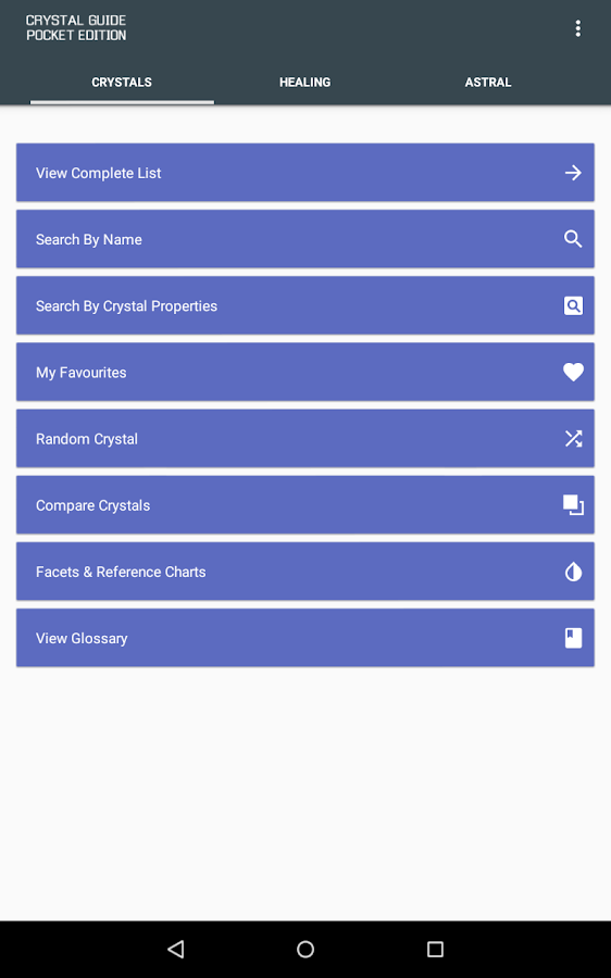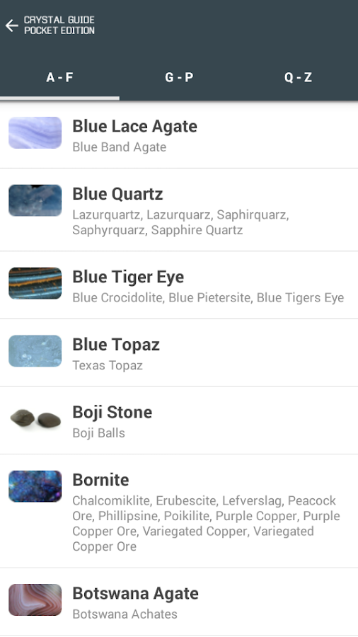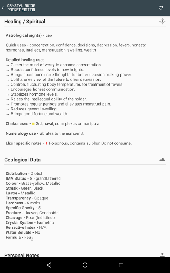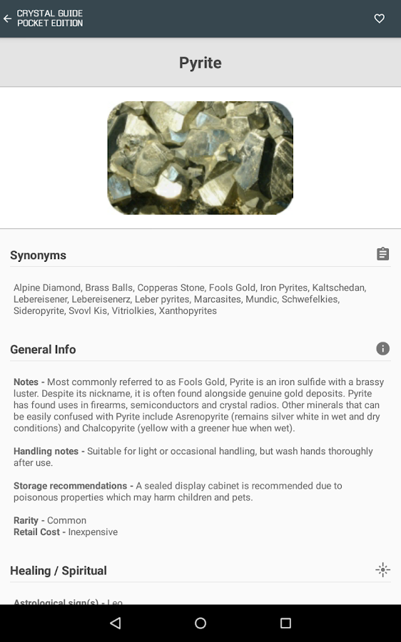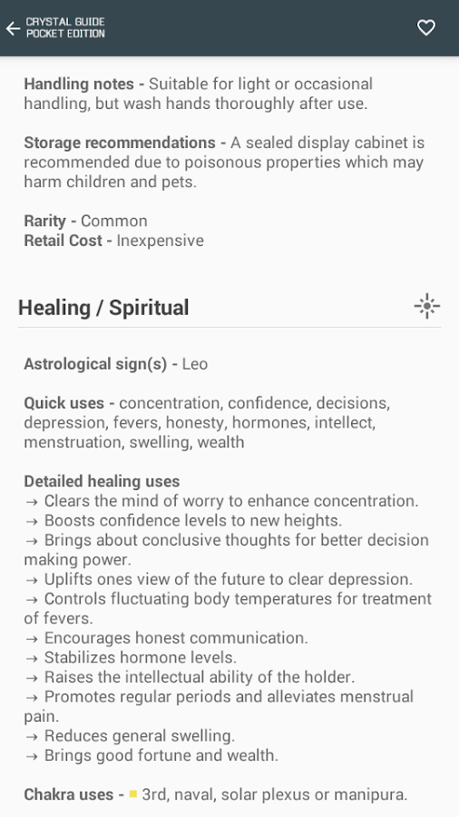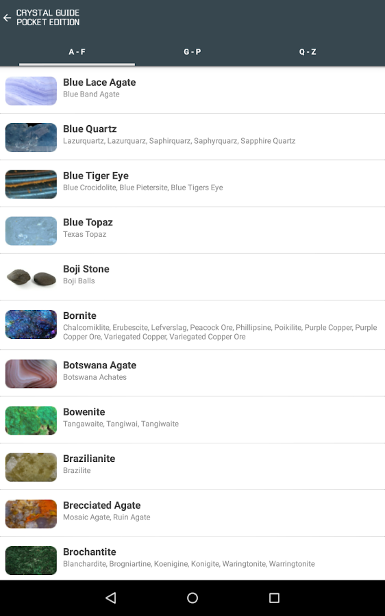 ✔ Huge A-Z of crystals, each with its own image and data.