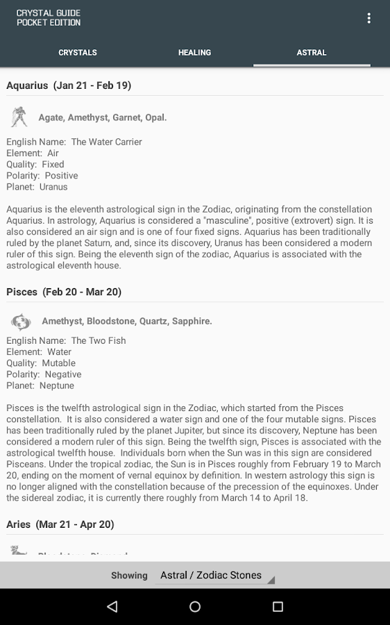 ✔ Astral / birthstone and zodiac information.