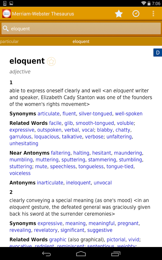* Full Thesaurus: more than 200,000 word choices, examples, and explanations