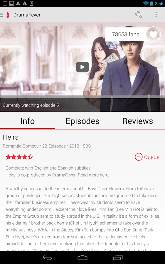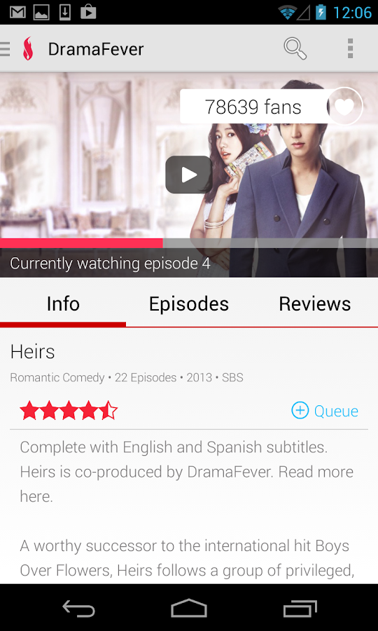 DramaFever - Dramas & Movies (Latest Version) is a Android App developed by DramaFever. It is a Entertainment kind of App with lots of features listed. This App already downloaded around 1,000,000 - 5,000,000 times from initial release. DramaFever - Dramas & Movies requires your device to have Android Latest Version to open this App. This particular version of the App released with lot of bug fixes and performance improvements. You can go ahead and Download DramaFever - Dramas & Movies (Latest Version) APK full version from the download page to install directly on your Android Device.