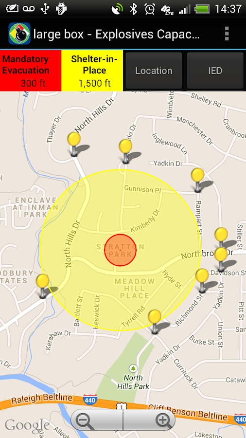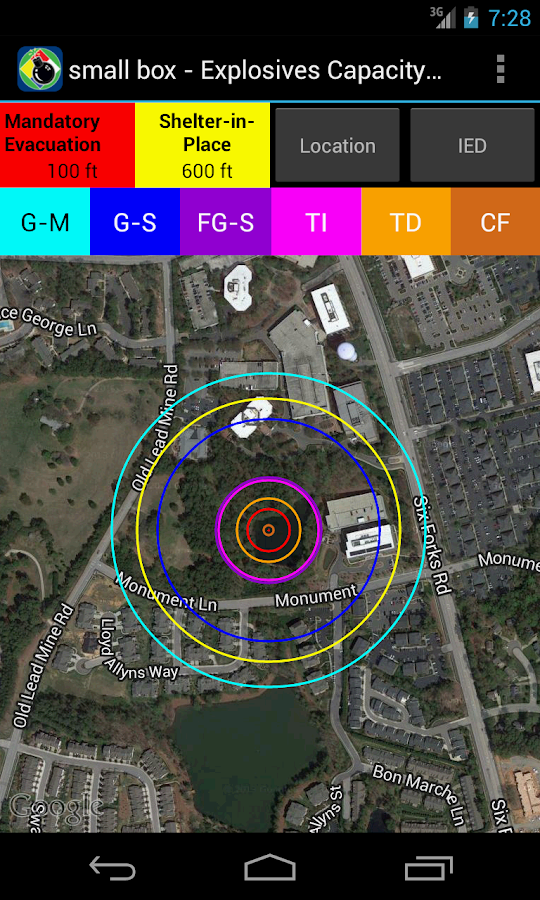 - Display IED Mandatory Evacuation and Shelter-in-Place Zones for 8 pre-defined bomb sizes and user defined custom IED types