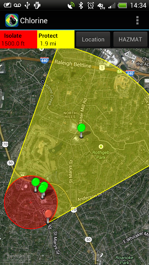 - Display Isolation Zones and down-wind Protection Zones for over 3,000 chemicals