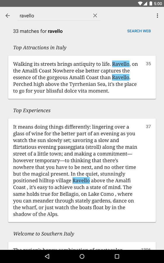 * Search within books, use dictionary, find geographical information, discover web results, and wikipedia right on the page