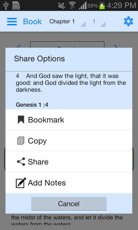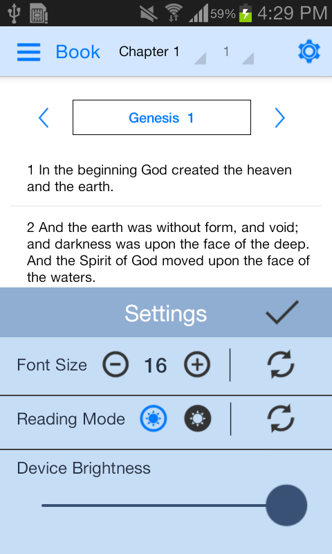 * Settings option added in the verse reading page