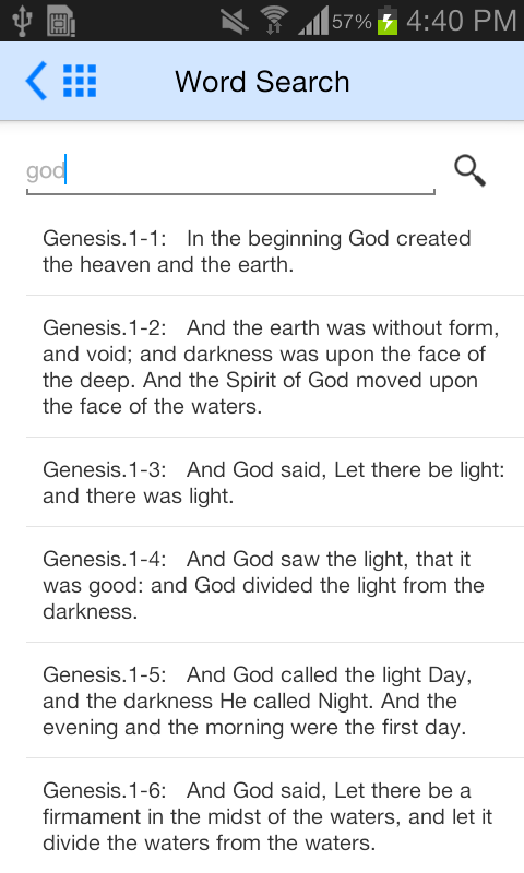 We are proud and happy to release the Holy Bible Offline (KJV) in android for free. Holy Bible Application is simply designed to make it available OFFLINE complete. Internet connection is not required to read the bible verses. The app contains both "Old Testament" and "New Testament". Search option is also provided for quick reference of King James Version. Forum has been included to have spiritual discussions.