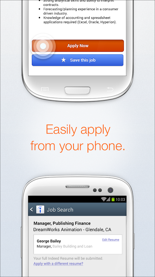 - Use your Indeed Resume to easily apply to select jobs