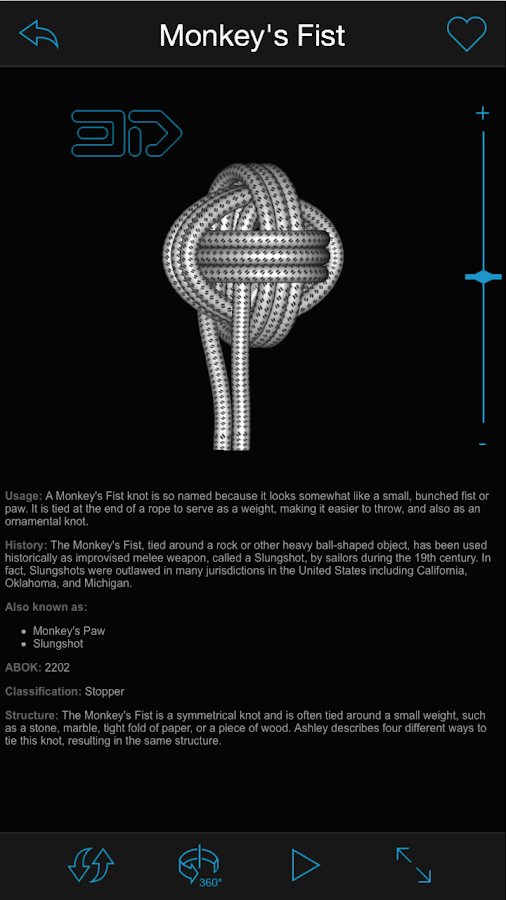 • Rotate knots in 360 degree, 3D views to study them from any angle with a swipe of a finger.