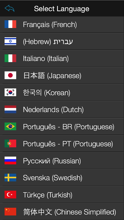 English, Arabic, Chinese, Danish, Dutch, French, German, Hebrew, Italian, Japanese, Korean, Norwegian, Polish, Portuguese, Russian, Spanish, Swedish and Turkish!