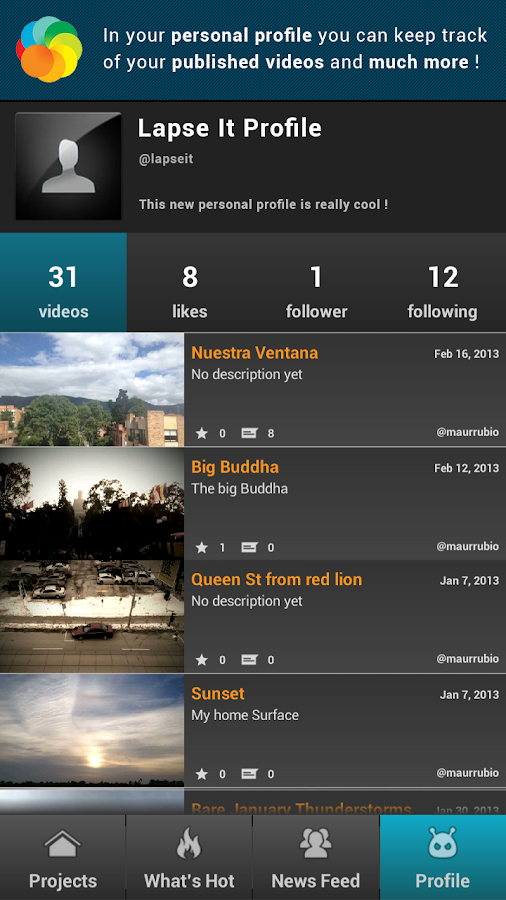 This new version brings more integration with social networks so you can easily publish your videos or share through the built-in Lapse It gallery, where other users can watch and vote.