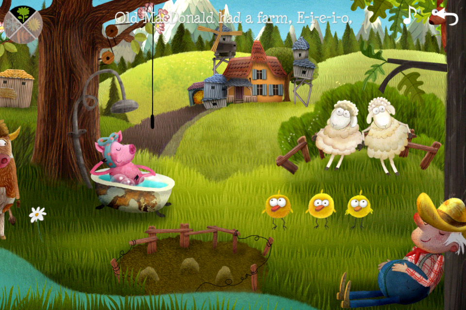 While old Mac Donald sleeps under his tree all year, the animals go crazy. Seasons change if you press the button; find out what cow, bee and the young chicks do in summer, spring and winter. How about the little fox? He dresses up as a sheep!