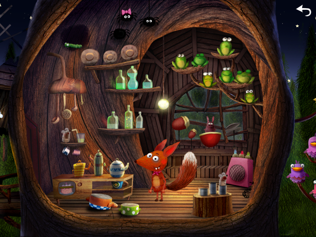 Birds, Frogs and dishes sing and jingle! Mommy Fox is knitting to the rhythm and the little fox is dancing. Almost everything in the studio makes a noise, be ready to explore every little corner.