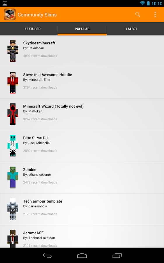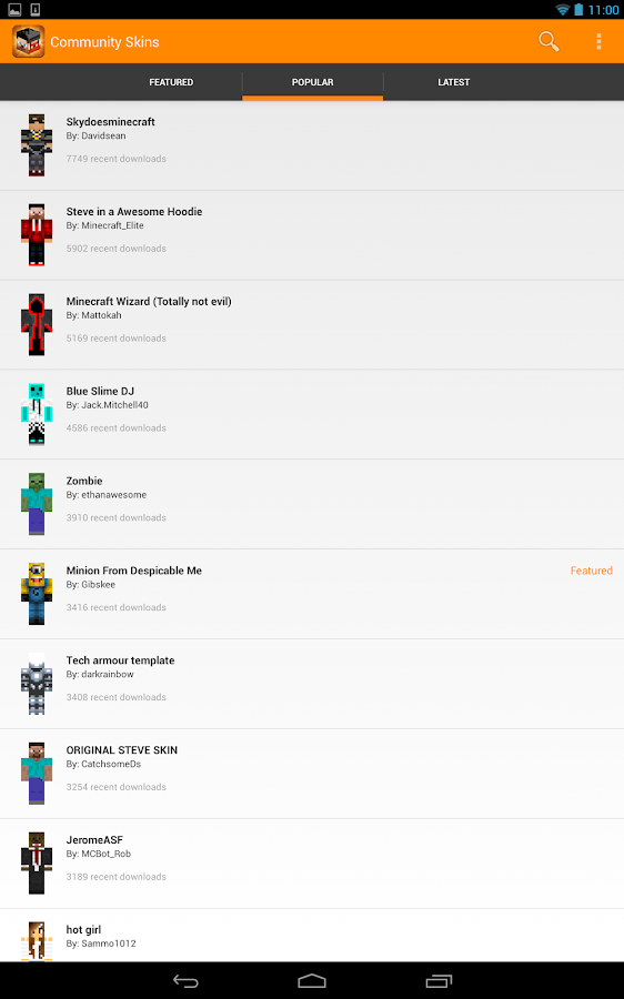 - Browse Minecraft skins