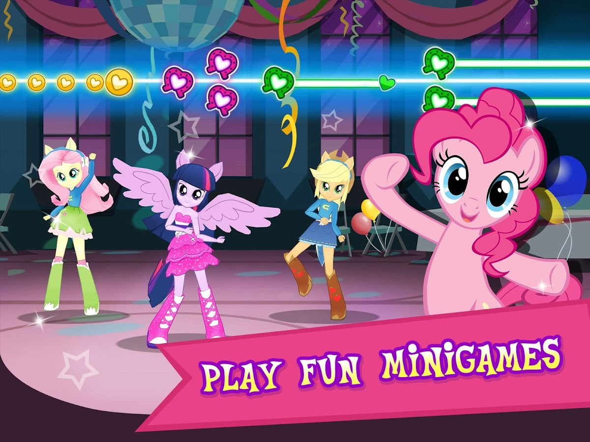 * Play fun mini-games with your ponies: Ball Bounce, Apple-Picking, Magic Wings, Telescope, Crystal Mine and Equestria Girls Dance game!