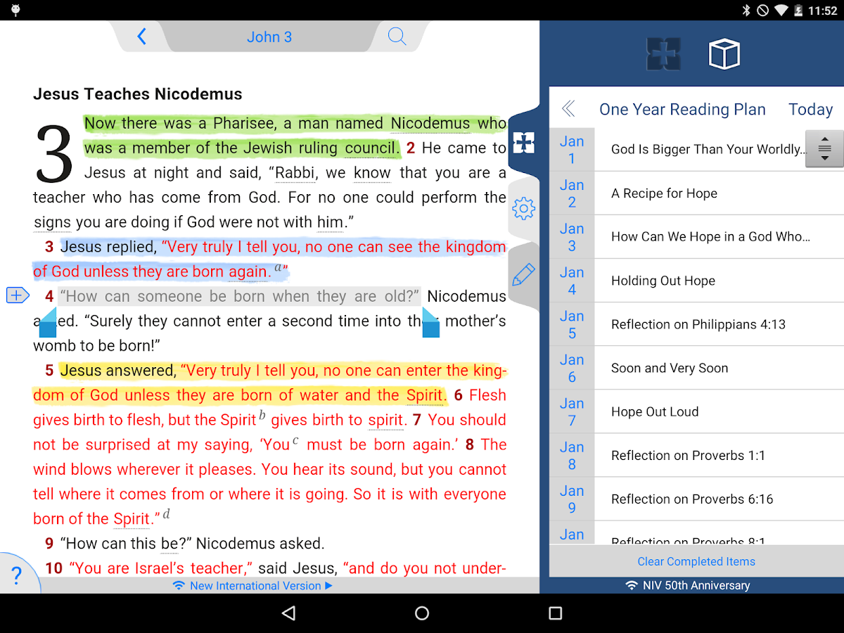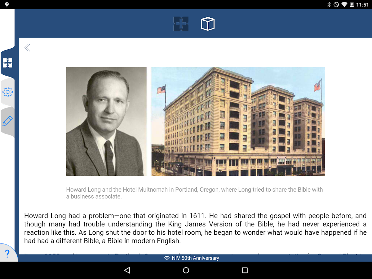 NIV 50th Anniversary Bible 7.8 is a Android App developed by Tecarta, Inc.. It is a Books & Reference kind of App with lots of features listed. This App already downloaded around 100,000 - 500,000 times from initial release. NIV 50th Anniversary Bible requires your device to have Android 7.8 to open this App. This particular version of the App released with lot of bug fixes and performance improvements. You can go ahead and Download NIV 50th Anniversary Bible 7.8 APK full version from the download page to install directly on your Android Device.