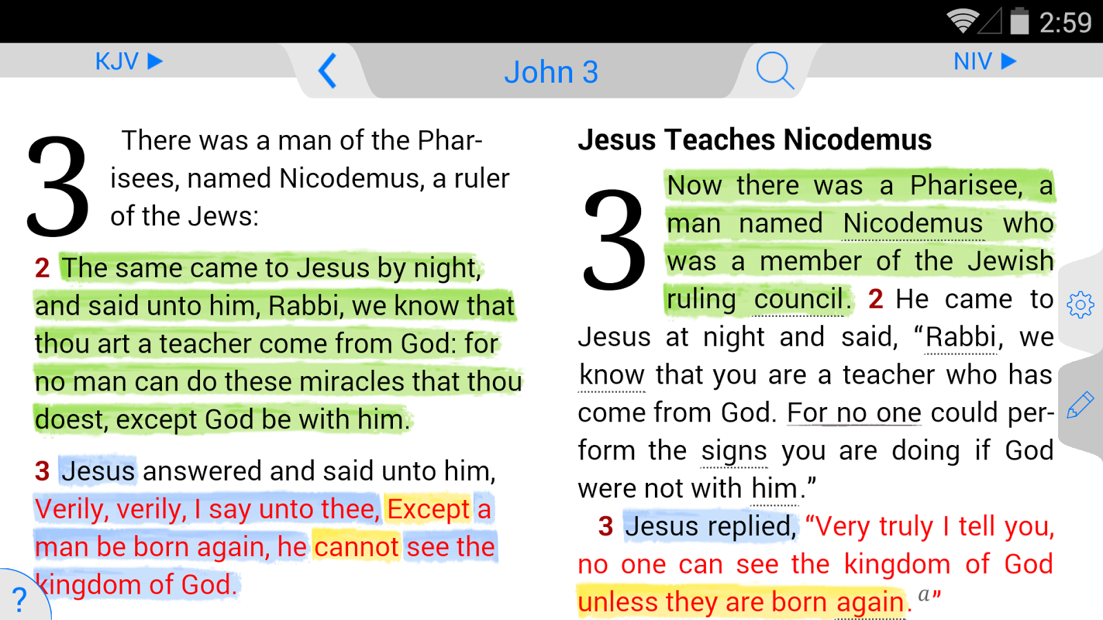 • Split-screen mode to read two Bible translations at once