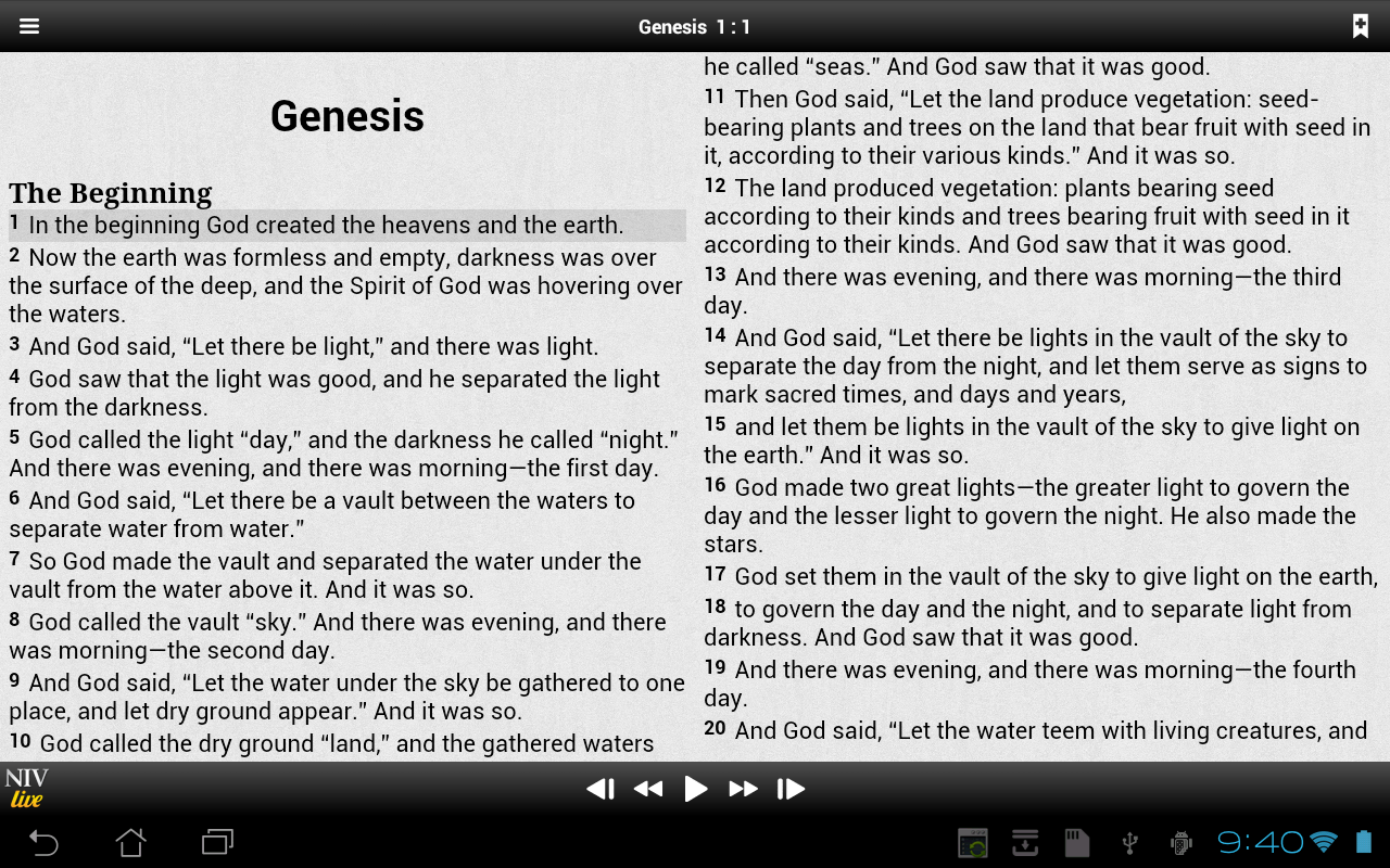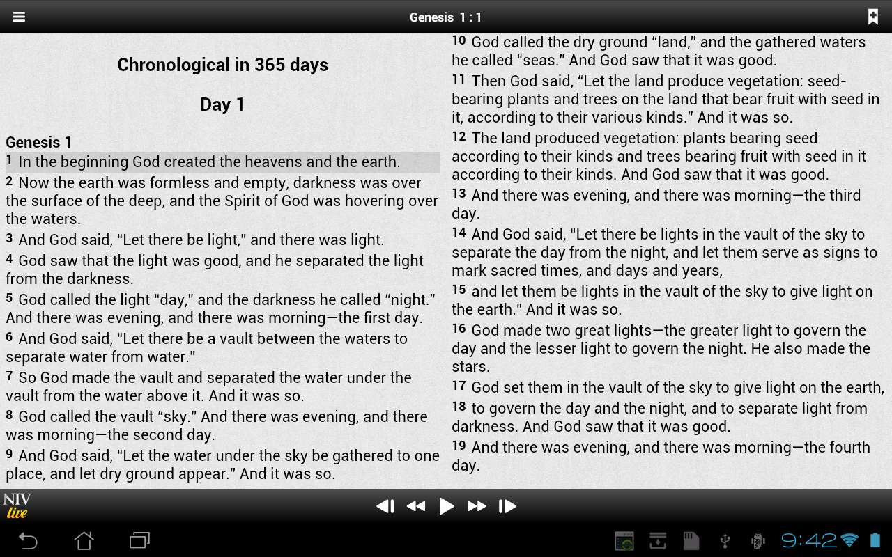 NIV Live: A Bible Experience 4.4.3 is a Android App developed by Inspired Properties, LLC. It is a Books & Reference kind of App with lots of features listed. This App already downloaded around 100,000 - 500,000 times from initial release. NIV Live: A Bible Experience requires your device to have Android 4.4.3 to open this App. This particular version of the App released with lot of bug fixes and performance improvements. You can go ahead and Download NIV Live: A Bible Experience 4.4.3 APK full version from the download page to install directly on your Android Device.
