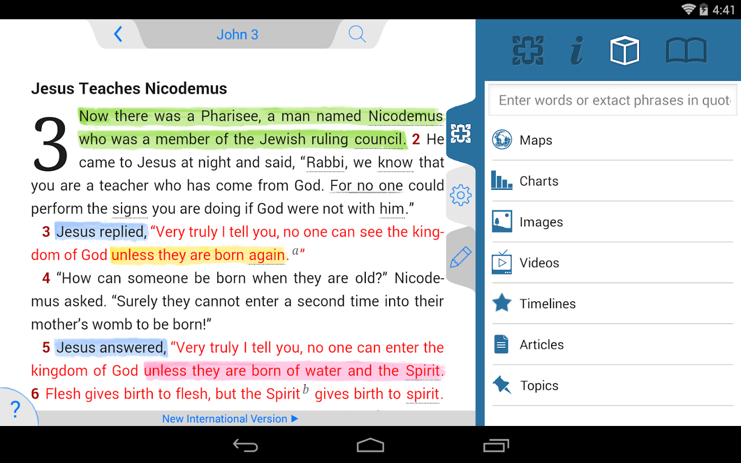Like no other Bible app for your Android, the all new Zondervan NIV Study Bible immerse you more deeply into the Word.