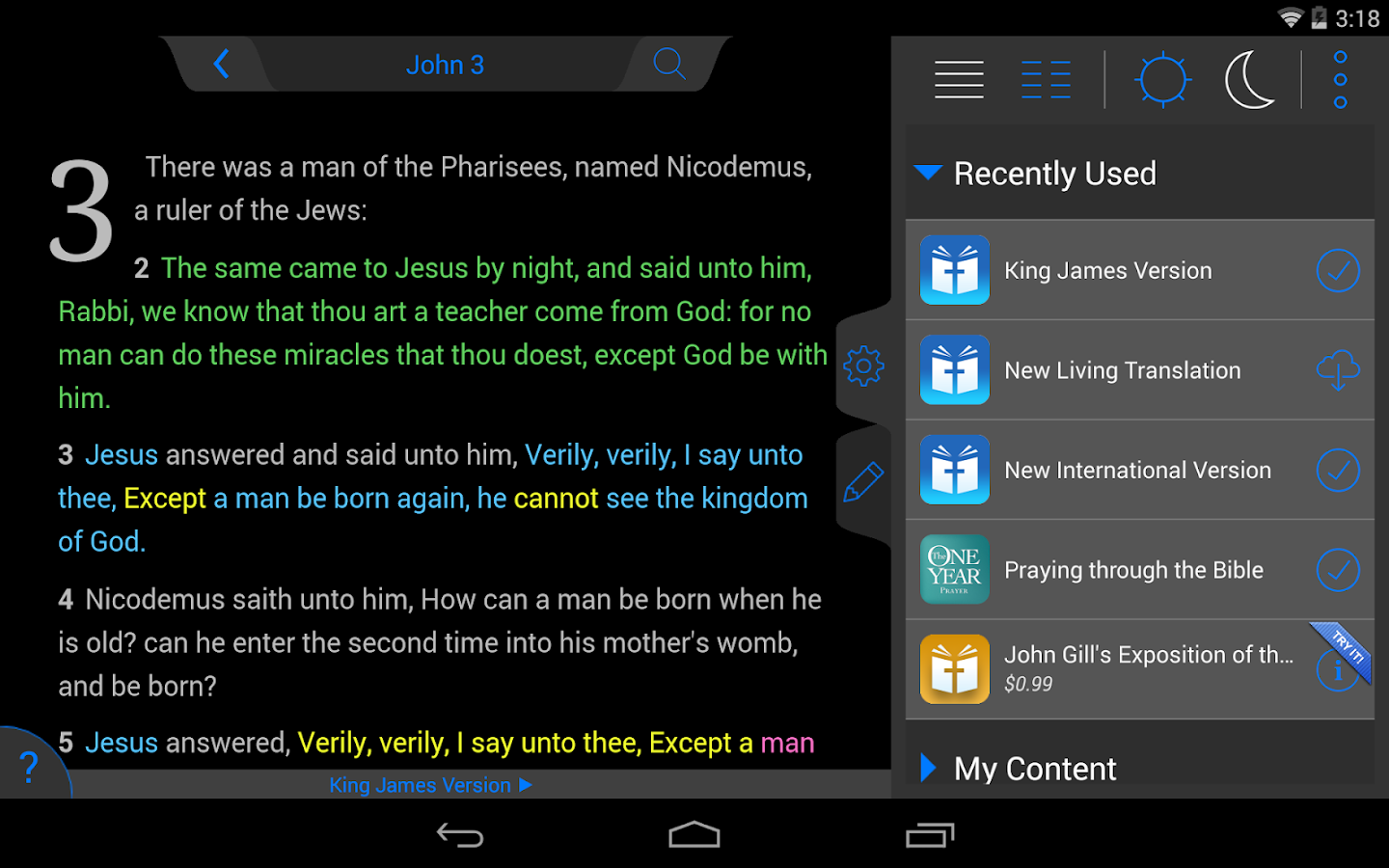 NKJV Bible 7.8 is a Android App developed by Tecarta, Inc.. It is a Books & Reference kind of App with lots of features listed. This App already downloaded around 10,000 - 50,000 times from initial release. NKJV Bible requires your device to have Android 7.8 to open this App. This particular version of the App released with lot of bug fixes and performance improvements. You can go ahead and Download NKJV Bible 7.8 APK full version from the download page to install directly on your Android Device.
