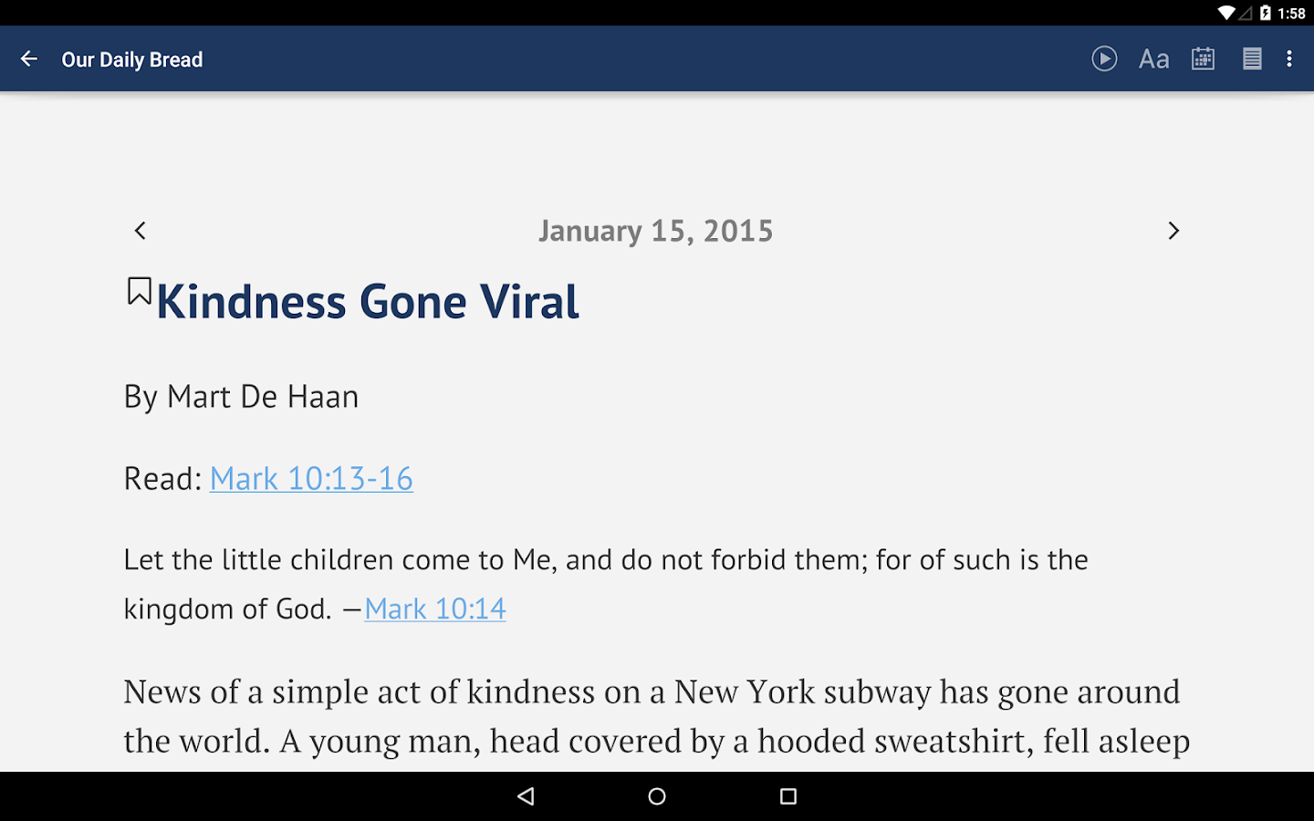 * Share daily readings with your friends by email and social media.