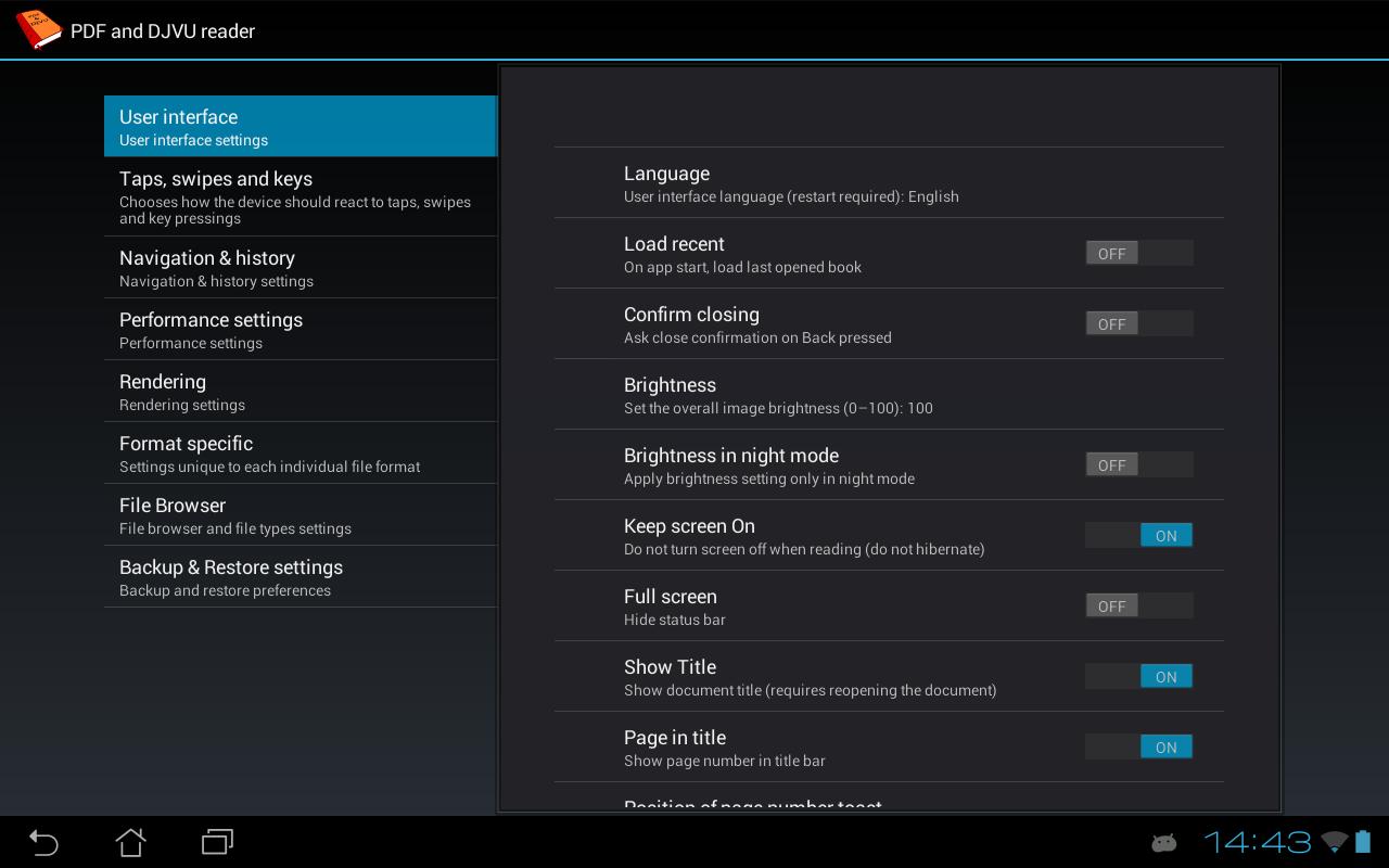 A lot of various preferences allowing you to customize reader as you wish.
