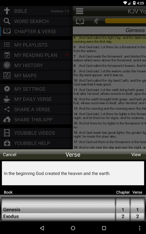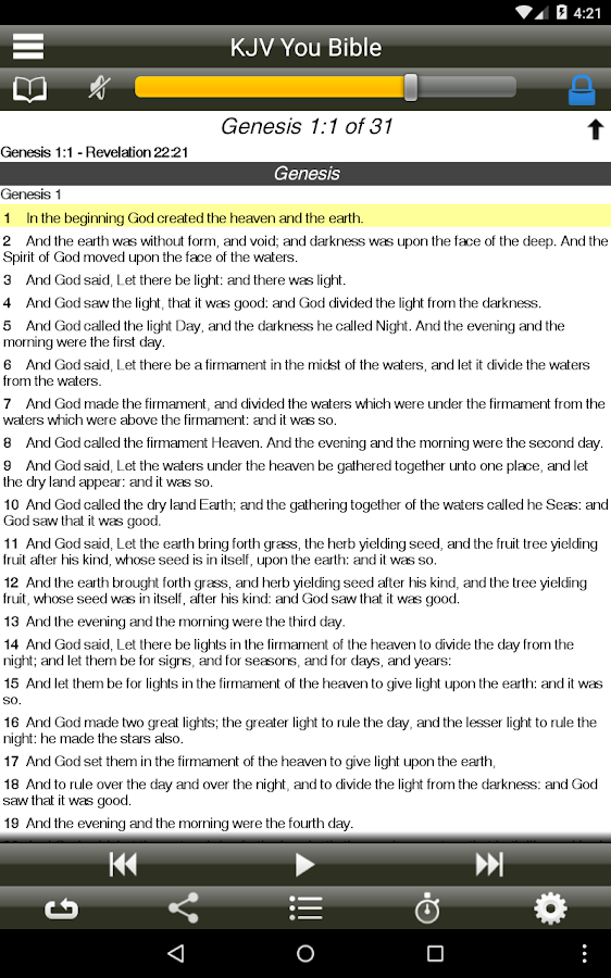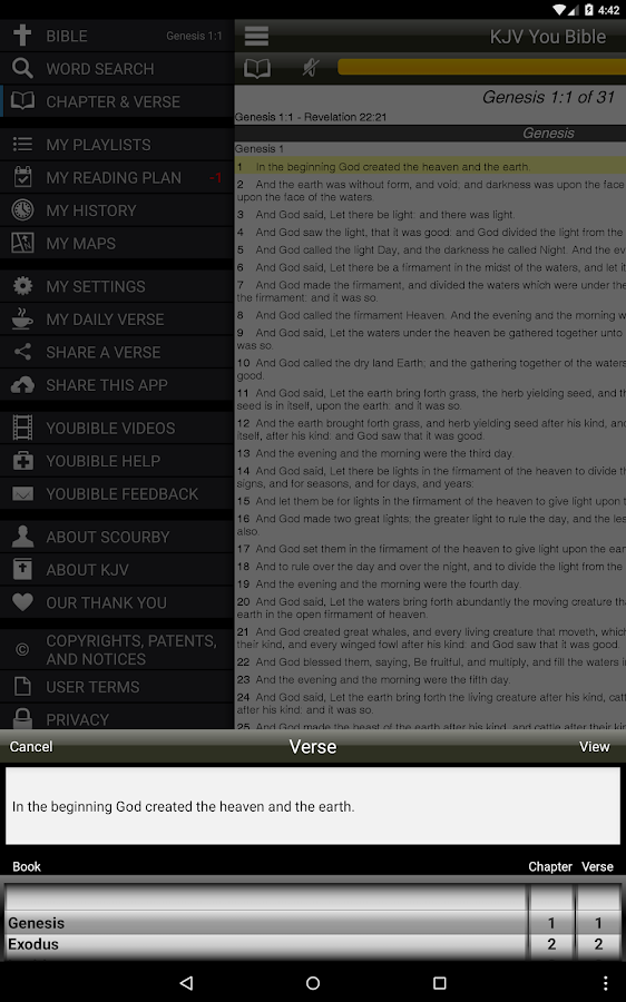 YouBible app is the best, especially with Alexander Scourby narrating it. I LOVE IT!!! Perfect, KJV Bible is the best. Am studying Old Testament Now. Awesome!