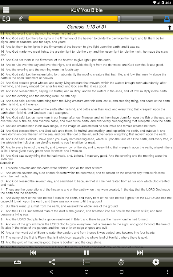 Scourby+King James Bible+Techonlogy ONE AMAZING APP! Best audio Bible app out there. Love sharing favorite Bible verses by email, text, Twitter and Facebook. I use them all. Get a lot of nice comments back. This is the best invention since the Gutenberg Press. Good job.