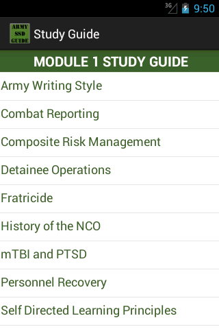 This app has EVERYTHING you will find in Structured Self Development Level I. SSD Level I must be completed by all Soldiers prior to attending the Warrior Leader Course. The actual SSD course contains tons of good information for troops. The problem is you only get to see it once while taking the course and ALMS is a terrible system if you want to review information.