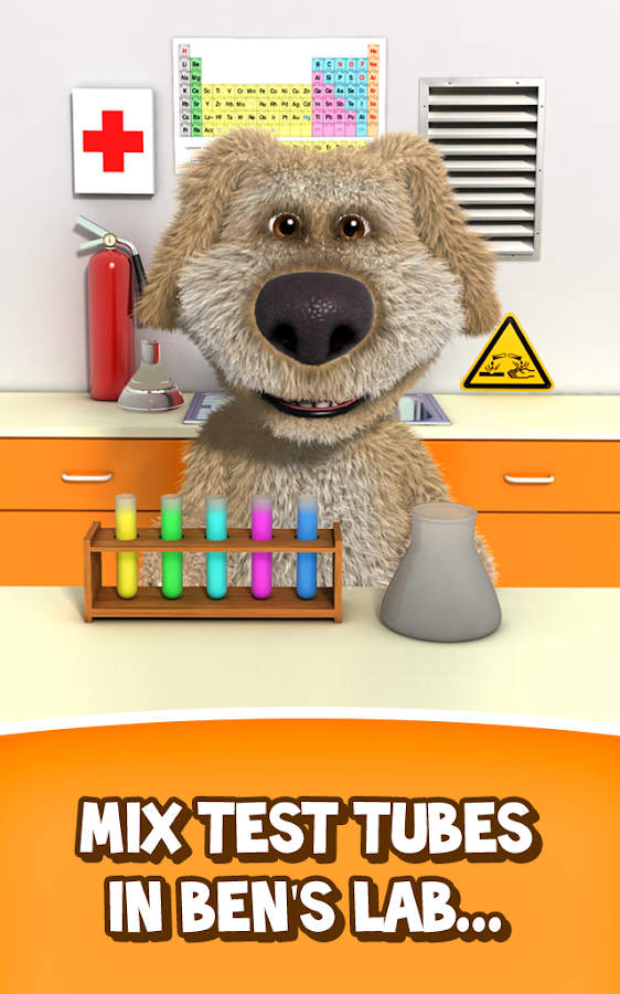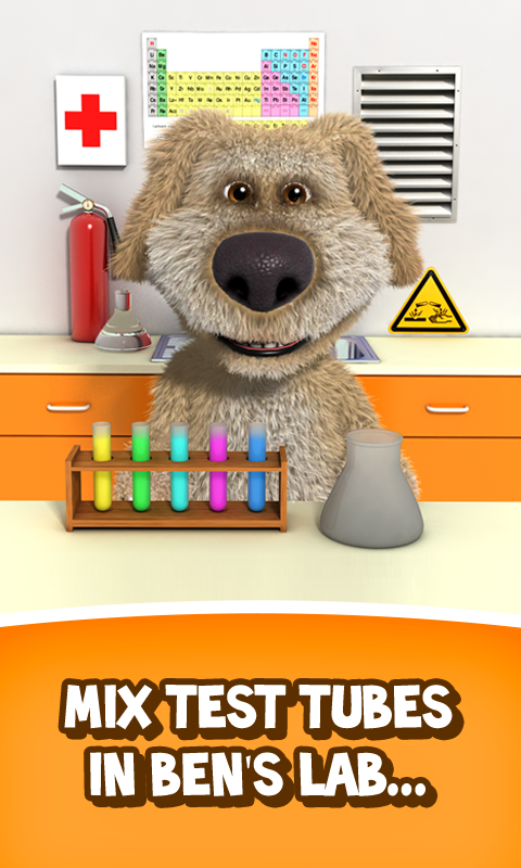 If you get Ben to his laboratory however, he becomes as happy as a puppy. There you can do chemistry experiments by mixing a combination of two test tubes together and see the hilarious reactions.