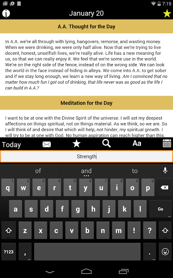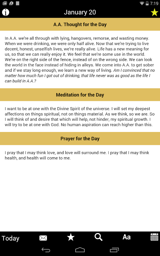 Find inspiration anywhere, at any time, with Hazelden Publishing’s Twenty-Four Hours a Day app featuring all 366 daily meditations from the classic best-selling meditation book for people in recovery from addiction. At the touch of a fingertip, Twenty-Four Hours a Day becomes your companion, making it easy to focus on your sobriety wherever you are. Practicing the Twelve Steps has never been more accessible.