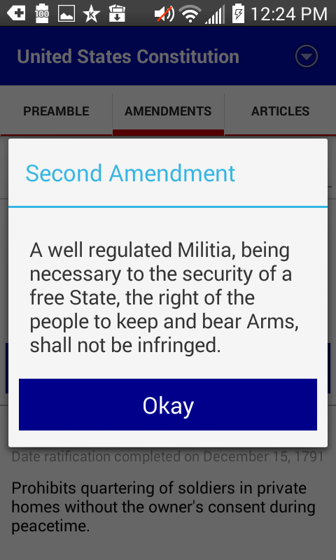 United States Constitution Pro 2.0 is a Android App developed by Lightworker. It is a Books & Reference kind of App with lots of features listed. This App already downloaded around 100 - 500 times from initial release. United States Constitution Pro requires your device to have Android 2.0 to open this App. This particular version of the App released with lot of bug fixes and performance improvements. You can go ahead and Download United States Constitution Pro 2.0 APK full version from the download page to install directly on your Android Device.